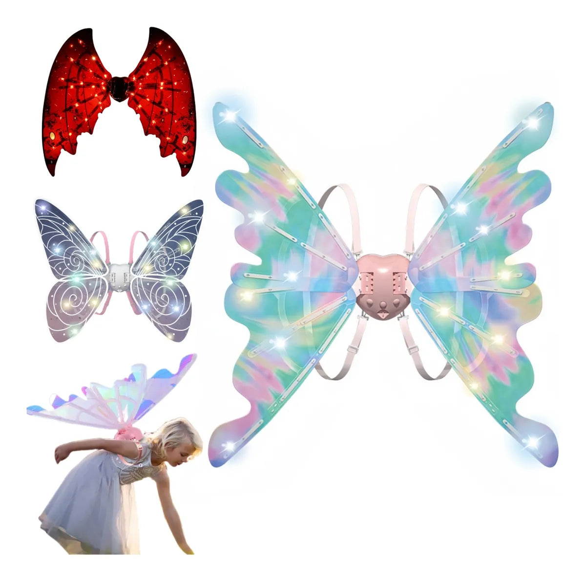 🎶Música luz y movimiento. 🪄 Correas ajustables. 🦋Sirve para niños y mascotas ✨ Realismo y emoción a cualquier disfraz.