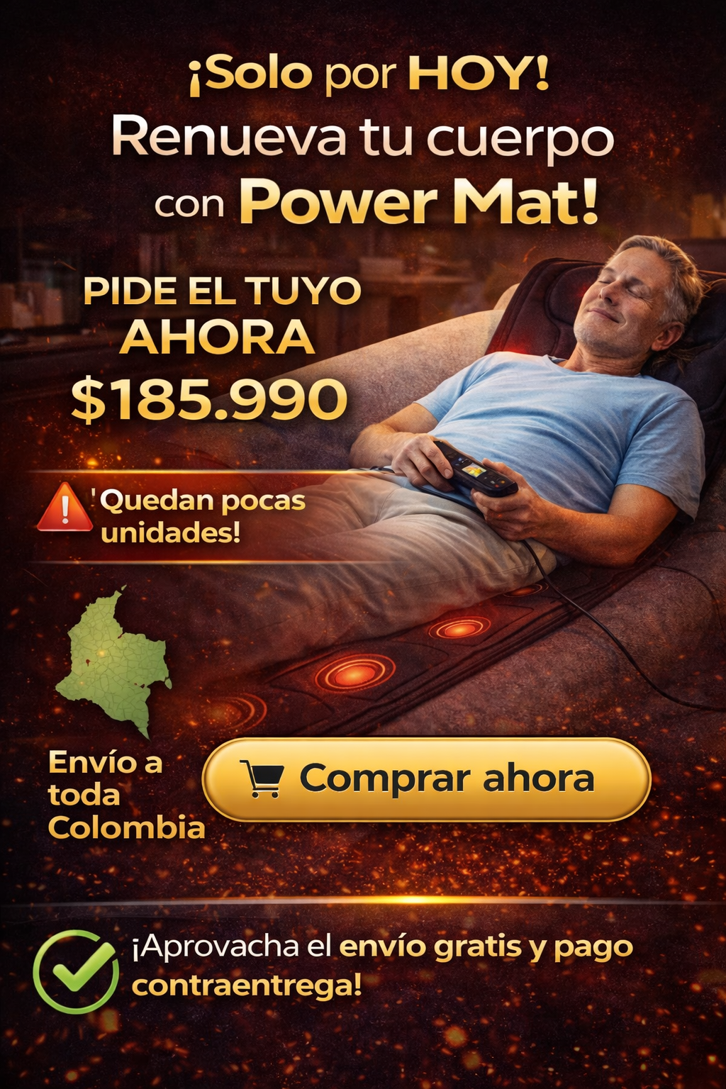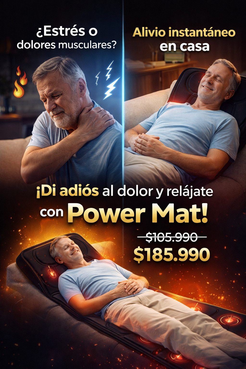 El Power Mat es la solución perfecta para aliviar tensiones y dolores musculares. Con su innovadora tecnología de masaje y calor terapéutico, podrás sentir cómo tu cuerpo se relaja en minutos.