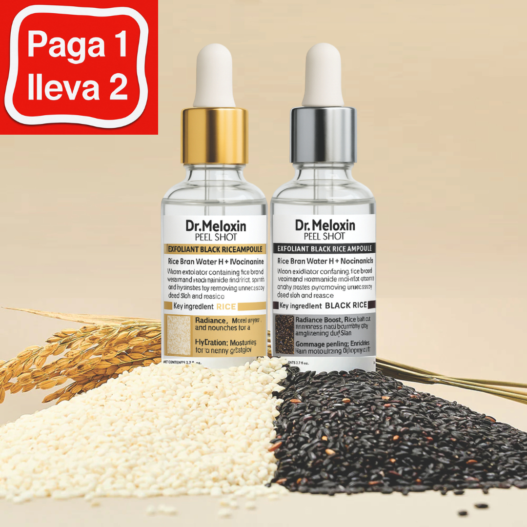 Suero facial altamente nutritivo con extractos fermentados de arroz blanco y arroz negro.