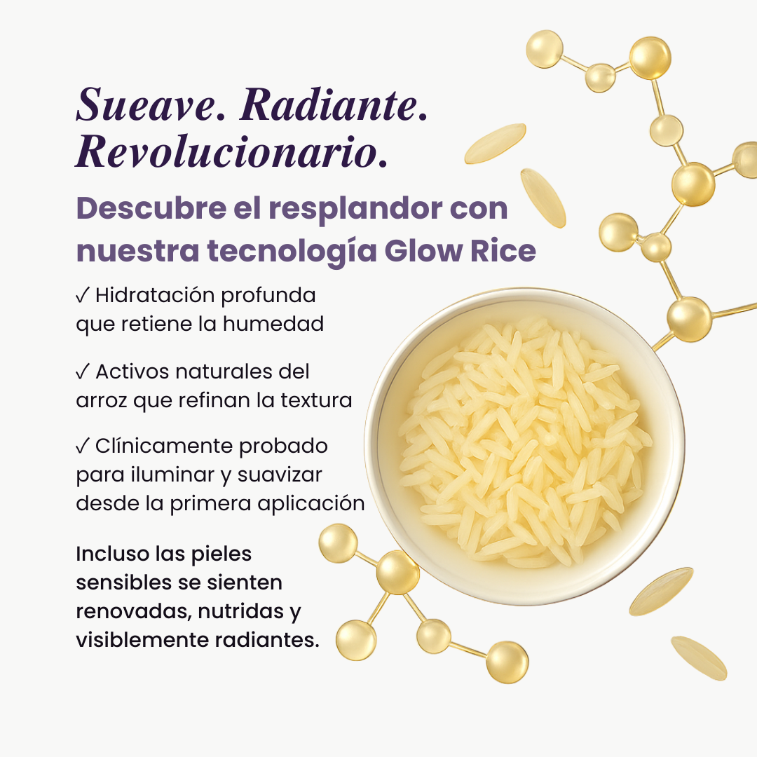 El secreto del arroz ahora está en tu piel. ¡Dile adiós al cansancio y a la piel opaca!