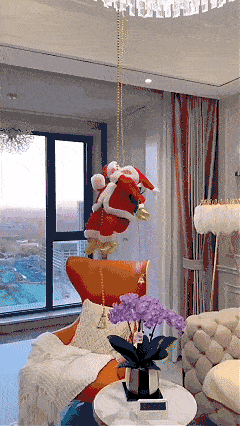 El Papá Noel mide aproximadamente 21 cm de alto, lo que lo hace perfecto para colocarlo en árboles, paredes, ventanas, puertas o chimeneas decorativas. Gracias a su cuerda y sistema de escalada, se adapta a diferentes espacios fácilmente.